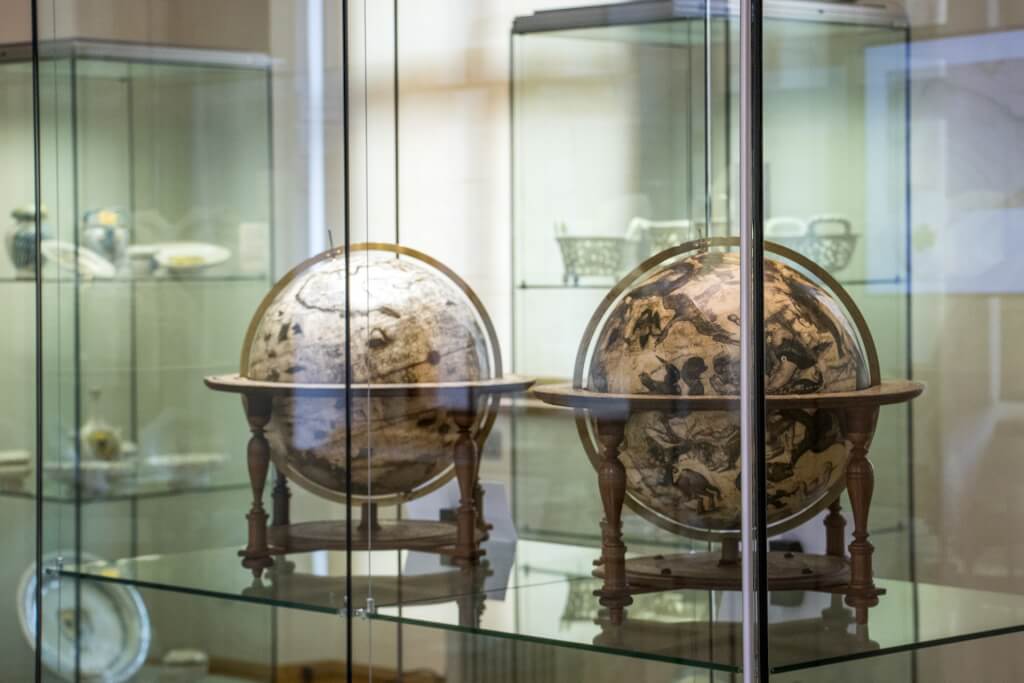 Návštěvníci se mohou těšit na výjimečné exponáty, jako je nebeský a zemský glóbus z roku 1600 z dílny významného kartografa Jodoca Hondia, rané vydání Atlasu Gerharda Mercatora, kolorovaná mapa z roku 1513 od Martina Waldseemüllera, dílo Athanasia Kirchera o Číně či cestopis Johana Albrechta von Mandelslo, který popisuje dobrodružnou cestu do Indie. Kromě toho výstavu doplňuje videoprezentace, která vysvětluje význam glóbů v raně novověké Evropě, přibližuje řemeslnou práci jejich tvůrců a především seznamuje diváka s náročným procesem jejich nedávného restaurování.