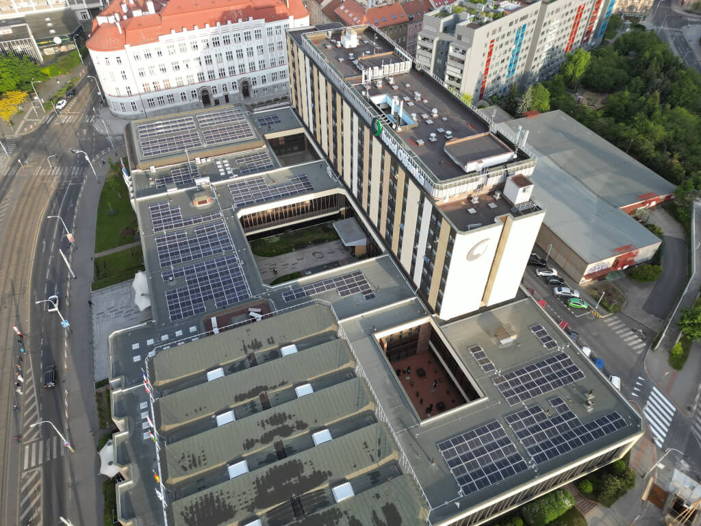 Hotel Olšanka instaloval na své střeše fotovoltaickou elektrárnu o výkonu 250 kW, která pokrývá téměř 20 % jeho roční spotřeby elektřiny a snižuje emise CO₂ o 140 tun ročně.