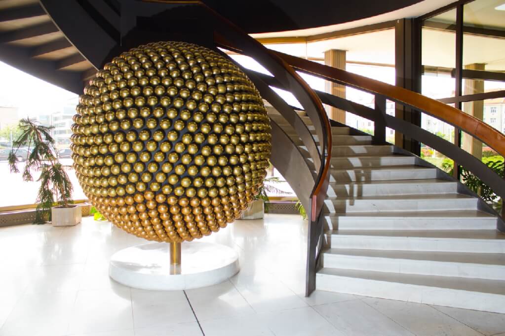 Kromě unikátního výhledu a kongresových prostor ukrývá KCP také více než dvě stě uměleckých děl. Světovým unikátem je opona s názvem Slunce v hlavním kongresovém sále. Jde o největší umělecké dílo v celé budově a jeho rozměry jsou doslova ohromující (15 x 40 m). Opona byla vytvořena původní technikou art protis, která spojuje textilní uměleckou tvorbu s tradiční malbou gobelínů. Autorem gigantické opony byl Alois Fišárek, který se podílel i na designu slavného československého pavilonu na Expo 58 v Bruselu.
