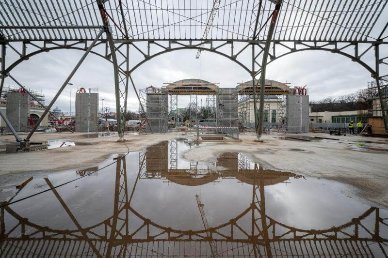 Obnova Průmyslového paláce na pražském Výstavišti pokračuje podle plánu i dva roky po zahájení náročných prací. Hotové už jsou například všechny výkopové práce, vznikl suterén pod levým křídlem paláce i s vjezdem pro kamiony a byla také vztyčena větší část ocelové konstrukce na levém křídle.
